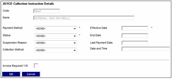 The JU1CD Collection Instruction Details screen will be displayed.