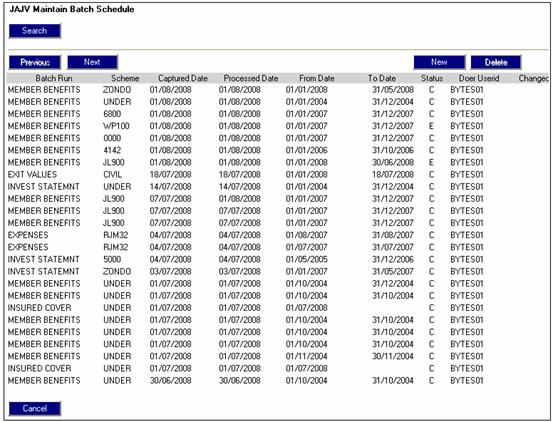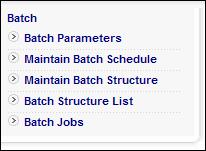 Select Maintain Batch Schedule from the sub-menu on the left. The JAJV Maintain Batch Schedule screen will be displayed.