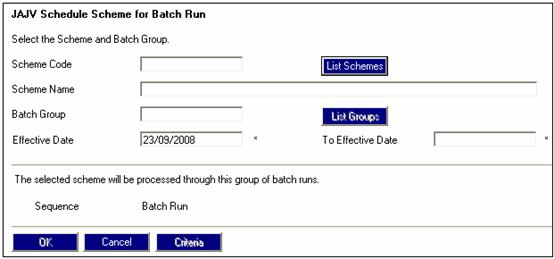 Schedule Scheme for Batch Run screen will be displayed.